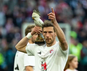 Знаменитая статуэтка какаду также появилась на поле во время воскресных торжеств, где её можно было увидеть рядом с игроками, включая полузащитника «Баварии» Леона Горецку.